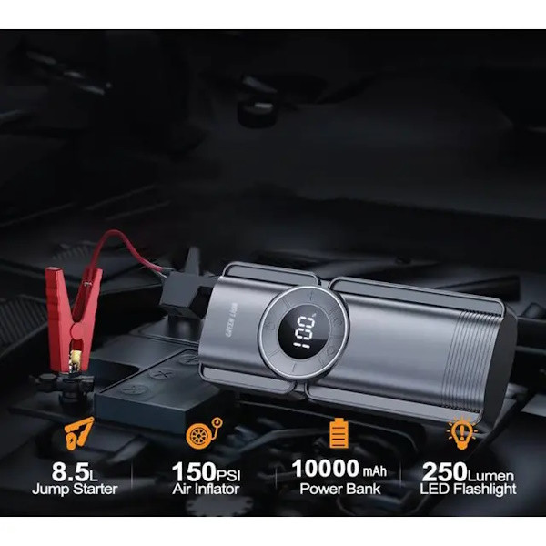 جامپ استارتر گرین مدل GNJUMPSTR، با پمپ هوا، یک ابزار ضروری برای هر مالک خودرو است( علی الخصوص اگر یک خودرو دنده اتومات دارید حتما به خرید یک جامپ استارتر بیندیشید ). این دستگاه قدرتمند میتواند خودرو را با ولتاژ ۱۲ ولت استارت بزند. با داشتن جریان پیک ۸۰۰ آمپری، اطمینان حاصل میکند که میتوانید خودرویتان را در شرایط سخت راهاندازی کنید. ظرفیت باتری ۱۰،۰۰۰ میلیآمپر ساعتی آن قدرت کافی برای استفادههای متعدد را فراهم میکند. پمپ هوای یکپارچه با فشار نامی ۱۵۰ PSI، به شما اجازه میدهد تا به راحتی تایرها را باد کنید، که این دستگاه را به یک ابزارمنعطف در کیت اضطراری شما تبدیل میکند. علاوه بر این،جامپ استارتر دارای حالت LED SOS است که در مواقع اضطراری یک سیگنال ایمنی قابل اعتماد را فراهم میکند. جامپ استارتر گرین دارای یک پمپ هوا جمع و جور و آسان برای استفاده است. این دستگاه برای ارائه آرامش خاطر در جاده ساخته شده است .ویژگی ها :جامپ استارتر با جریان 800 آمپری،پمپ هوا با فشار نامی 150 PSI،پاوربانک 10000 mAh،چراغ اضطراری،پمپ باد شارژی