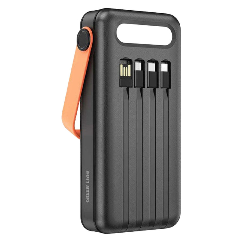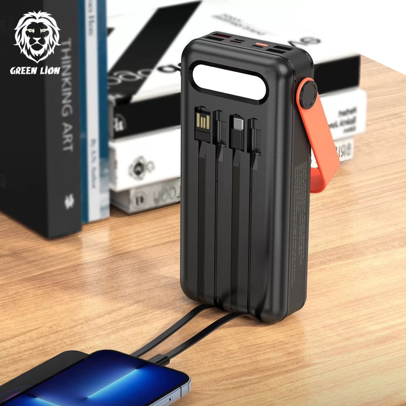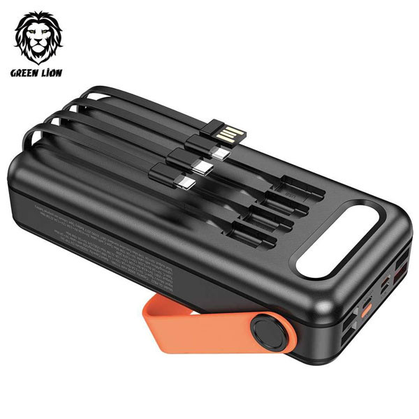 پاوربانک 30000 خورشیدی گرین مدل Solar Portable یک پاوربانک همه چیز تمام با پنل شارژ خورشیدی میباشد که بدون نیاز به دسترسی به برق شهری ، تنها با قرار گرفتن در معرض نور خورشید ، باتری آن شارژ میشود . این پاوربانک برای کسانی که دائما در حال سفر ، گشت و گذار ، طبیعت گردی ، کمپینگ و … هستند بسیار مناسب است .اولین ویژگی که نظر هر کاربری را جلب میکند ، بی نیازی به حمل کابلهای اضافه میباشد ، زیرا این پاوربانک دارای 4 کابل کوتاه USB-A ، Type-C ، Micro و Lightning است که متصل به پاوربانک میباشد و هر نوع موبایلی را میتوانید شارژ کنید .علاوه بر کابل ، دارای 4 عدد پورت USB-A ، یک عدد پورت Type-C ، یک عدد پورت Micro و یک پورت Lightning برای شارژ موبایل میباشد که از طریق یکی از این پورتها میتوانید پاوربانک را نیز شارژ کنید .در یک طرف آن پنل خورشیدی و در طرف دیگر آن یک پنل نوری LED قرار دارد که در هنگام شب بسیار کاربردی است و نمایشگر دیجیتال آن میزان شارژ باتری را نمایش میدهد .پاوربانک 30000 خورشیدی گرین مدل Solar Portable از قابلیت شارژ سریع نیز پشتیبانی میکند .