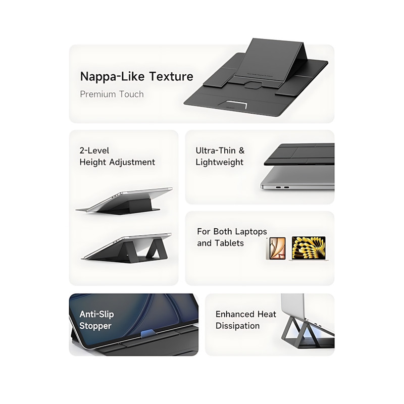 استند پایه نگهدارنده تاشو چرمی لپتاپ و تبلت مک دودو مدل FS-802، محصولی لوکس و کاربردی است که با طراحی شیک و هوشمند، تجربهای بینظیر از راحتی و کارایی را برای کاربران لپتاپ و تبلت به ارمغان میآورد. این استند با جنس PU (چرم مصنوعی مرغوب ضد لک و چربی دست)، PC، آهنربا و TPU، در رنگ مشکی و ابعاد 240×225×4.5 میلیمتر با وزن سبک، ضخامتی تنها 4 میلیمتر در حالت تاشو دارد و بهراحتی در کیف یا کولهپشتی جا میگیرد. سازگار با لپتاپهای 11 تا 16 اینچ و تبلتهای 7 تا 11 اینچ، این استند با آهنربای قوی و استحکام بالای بدنه فایبرگلاس، تا 5 کیلوگرم وزن (معادل حدود 5 لپتاپ) را تحمل میکند. قابلیت تنظیم ارتفاع در دو حالت 5 و 7.7 سانتیمتر، انعطافپذیری برای زوایای مختلف دید و تایپ را فراهم میکند و استوپر تعبیهشده، از سر خوردن یا لغزش دستگاه جلوگیری میکند. برای اطمینان از اصالت و کیفیت محصول، توصیه میکنیم که فقط از فروشندگان معتبر مانند تکنیک تل که سابقه درخشانی در ارائه محصولات باکیفیت دارند خرید کنید. لطفا به نام تکنیک تل دقت کنید, فروشنده های دیگر با هدف فروش محصولات بی کیفیت و کپی با نام های مشابه همچون تکنیکاتل سعی در فریب شما عزیزان دارند. طراحی دوپایهای منحصربهفرد، انتقال حرارت بهینه را تضمین کرده و از داغ شدن لپتاپ یا تبلت جلوگیری میکند، در حالی که چرم مصنوعی باکیفیت، جلوهای لاکچری و حرفهای به آن میبخشد. این استند با استحکام بالا و تاشوندگی، برای استفاده در سفر، محل کار یا خانه ایدهآل است و حس لوکس بودن را در هر استفاده منتقل میکند. اگر به دنبال محصولی هستید که زیبایی، کارایی و محافظت را در قالبی نازک و شیک ترکیب کند، FS-802 با نوآوری مک دودو، تجربهای رضایتبخش ارائه میدهد و هر کاربری را با استحکام بینقص، طراحی لاکچری و راحتی حملش شگفتزده میکند.