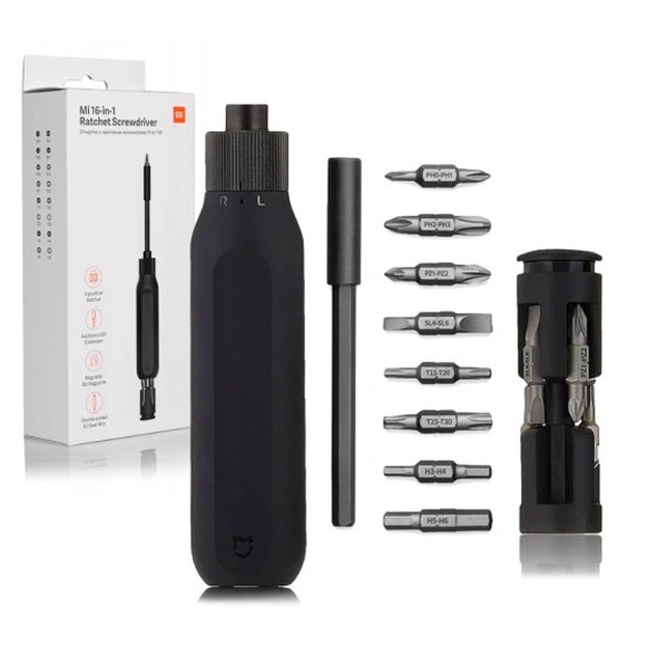 جنس دسته پیچ گوشتی از نایلون، الیاف شیشه ای و لاستیک TPE ساخته شد است به همین جهت دارای چسبندگی کافی است و در حین انجام کار لغزشی کاربران را آزار نمی دهد. جنس سری ها از آلیاژ فولاد S2 است. این آلیاژ بسیار مقاوم و سخت بوده اما باعث شکستن وآسیب دیدن پیچ ها نمی شود. برای عوض کردن حالت های مختلف در این وسیله یک چرخدنده آلومینیومی با ۴۵ دندانه در زیر یک میله فلزی کششی قرار داده شده که به نرمی میله را می چرخاند پیچ گوشتی ابزاری است که در کارهای تعمیری از آن استفاده می شود و هم افراد مبتدی به جهت تسهیل کار و هم حرفه ای ها برای تسریع انجام، به یک محصول با کیفیت نیاز خواهند داشت. پیچ گوشتی mi 16 in 1 Screwdriver همان طور که در نام آن آمده، محصولی کاربردی است که با داشتن ۱۶ سر متفاوت که به بنده متصل می شوند، مانند یک جعبه ابزار کوچک است که حمل و جا به جایی آن بسیار راحت است. با توجه به تنوع محصولاتی که امروزه در بازار وجود دارد، قطعات مختلفی در آن ها برای اتصال استفاده می شود، که پیچ گوشتی شیائومی امکان شل و سفت کردن انواع پیچ را برای کاربران فراهم می کند. این ۱۶ سر متفاوت به واسطه میله ی فولادی به بدنه وصل می شوند، چرخ دنده قرار داده شده در بدنه در سه حالت می تواند میله و سری را بسیار روان بچرخاند. این سه حالت عبارتند از : گردش به چپ، گردش به راست و حالت دستی جذب مغناطیسی سری ها به پیچ بسیار بالا بوده و این وسیله می تواند گشتاور۲۰نیوتن متر را تحمل کند. این محصول با وزن ۲۳۰ گرم، به دست فشار نمی آورد وکارکردن با آن بسیار آسان است.