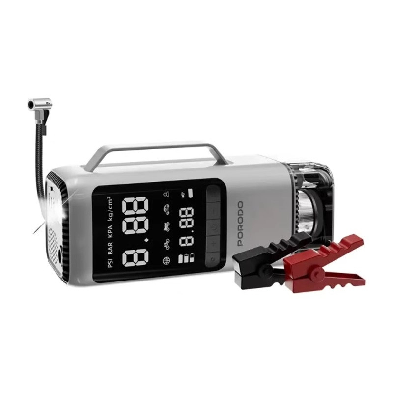دستگاه Porodo PDPBFCH091BKGR یک ابزار همهکاره مخصوص خودرو است که چندین عملکرد کاربردی را در یک محصول جمع کرده است. این دستگاه دارای قابلیت جامپ استارتر با جریان پیک ۱۰۰۰ آمپر، پاوربانک ۸۰۰۰ میلیآمپرساعتی، پمپ باد قدرتمند با فشار ۱۵۰ PSI، جاروبرقی داخلی خودرو و چراغ LED با حالت اضطراری SOS است. طراحی جمعوجور و وزن مناسب آن، حمل و استفاده از آن را در سفر و شرایط اضطراری بسیار آسان میکند. این محصول مناسب خودروهای بنزینی تا ۶.۰ لیتر و دیزلی تا ۳.۰ لیتر بوده و یک انتخاب ایدهآل برای رانندگان است.