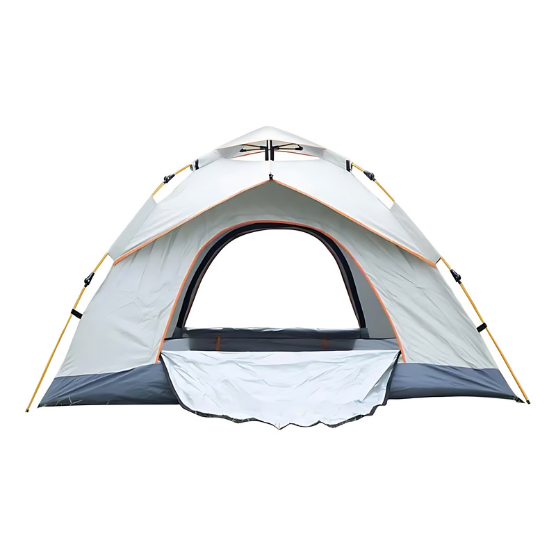 بدنه چادر از جنس پلیاستر ساخته شده که انتخابی رایج و قابل قبول برای چادرهای کمپینگ به شمار میرود. این نوع پارچه نسبت به رطوبت مقاوم است و خشک شدن آن پس از تماس با آب سریعتر صورت میگیرد. زیپهای بهکار رفته در چادر از نوع ضدآب هستند و همین موضوع از ورود آب به داخل در شرایط بارندگی خفیف جلوگیری میکند. در کنار اینها، مقاومت در برابر نور خورشید نیز باعث افزایش عمر پارچه و حفظ ظاهر و کیفیت چادر در استفادههای متوالی میشود. همچنین طراحی گنبدی چادر، در کنار سیستم مهار با گیرهها و ستونهای منعطف، مقاومت مناسبی در برابر بادهای سبک تا متوسط فراهم میآورد.