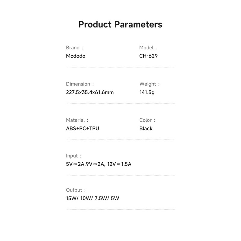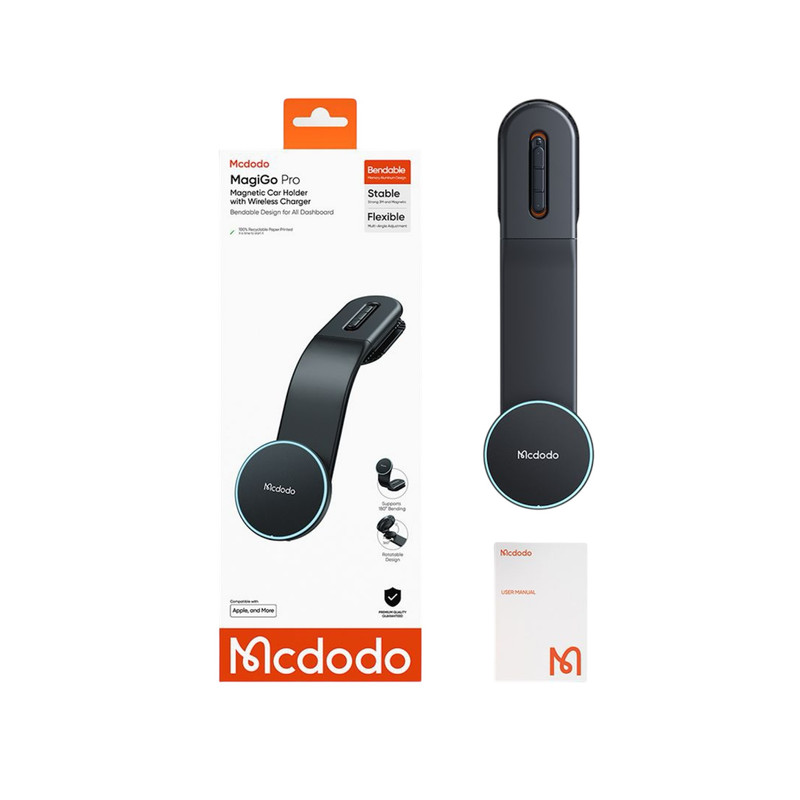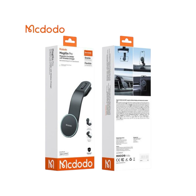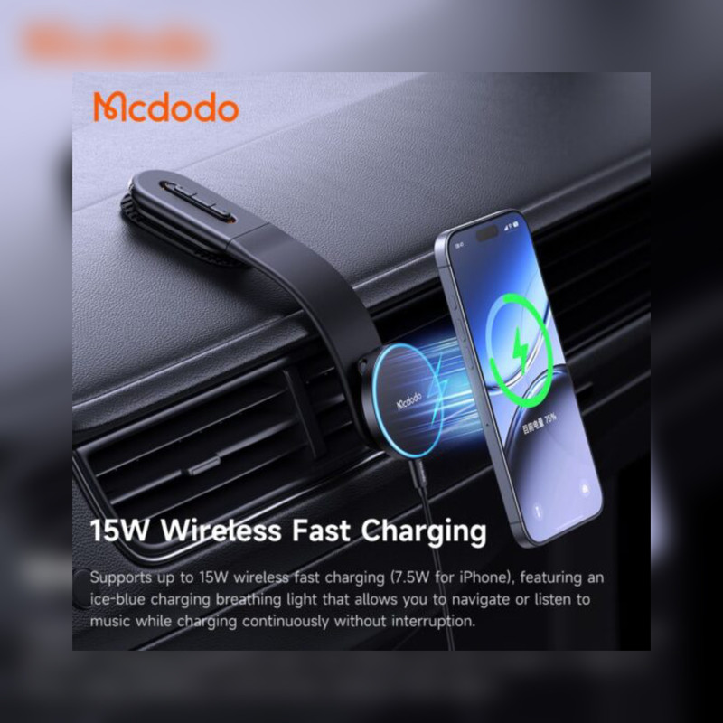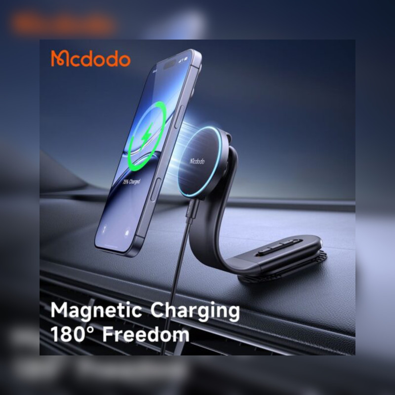هولدر موبا۸یل و شارژر وایرلس McDodo CH-6290 یک راهحل حرفهای و با کیفیت برای شارژ گوشی در خودرو است که با پشتیبانی از شارژ سریع 15 وات و فناوری MagSafe تجربهای ایمن و راحت برای رانندگی روزمره ارائه میدهد.پشتیبانی از استاندارد Qi Fast Wireless باعث میشود گوشی شما با حداکثر توان ممکن شارژ شود. شارژر وایرلس ماشین McDodo CH-6290 فقط یک شارژر ساده نیست، بلکه یک لوازم جانبی موبایل با ترکیبی از هولدر مگنتی، شارژ سریع بیسیم و طراحی ایمن برای خودرو است. این هولدر گوشی از ترکیب چند متریال مقاوم شامل TPU، آلومینیوم، پلیکربنات و ABS ساخته شده که مقاومت بالا در برابر ضربه و لرزشهای ناگهانی خودرو را تضمین میکند. وزن مناسب 141 گرم باعث میشود نصب و نگهداری آن روی داشبورد ثابت و بدون لغزش باشد. بازوی قابل تنظیم و تاشونده هولدر امکان تغییر زاویه دید را فراهم میکند تا گوشی همیشه در بهترین موقعیت و بدون ایجاد مزاحمت در دید راننده قرار گیرد. این انعطافپذیری باعث میشود حتی در مسیرهای طولانی یا ناهموار، دسترسی آسان و راحت به گوشی حفظ شود. پایه این هولدر وایرلس دارای بازوی منعطف و قابل تنظیم است که امکان تغییر زاویه را فراهم میکند. به این ترتیب میتوانید گوشی را در موقعیتی قرار دهید که دید راننده مختل نشود و دسترسی به نمایشگر و مسیریابی در بهترین حالت ممکن باشد. این نگهدارنده گوشی و شارژر بی سیم از فناوری شارژ سریع بیسیم تا 15W بر پایه استاندارد Qi Fast Wireless پشتیبانی میکند. اتصال گوشی به هولدر از طریق سیستم مگنتی قدرتمند انجام میشود که با استفاده از حلقه مغناطیسی، نگهداری پایدار و ایمن گوشی را حتی در مسیرهای ناهموار تضمین میکند. این طراحی باعث میشود گوشی بهراحتی با یک دست روی هولدر قرار بگیرد یا جدا شود، بدون نیاز به گیرههای مکانیکی. این ساختار علاوه بر سهولت استفاده، به شارژ پایدار و ایمن کمک میکند و از داغ شدن بیش از حد گوشی در حین شارژ جلوگیری میکند. امکان چرخش 360 درجه به شما اجازه میدهد گوشی را متناسب با نیاز خود در حالت عمودی یا افقی قرار دهید؛ ایدهآل برای مسیریابی، تماس یا مشاهده محتوا، بدون نیاز به جدا کردن گوشی از هولدر یا تغییر محل نصب آن.