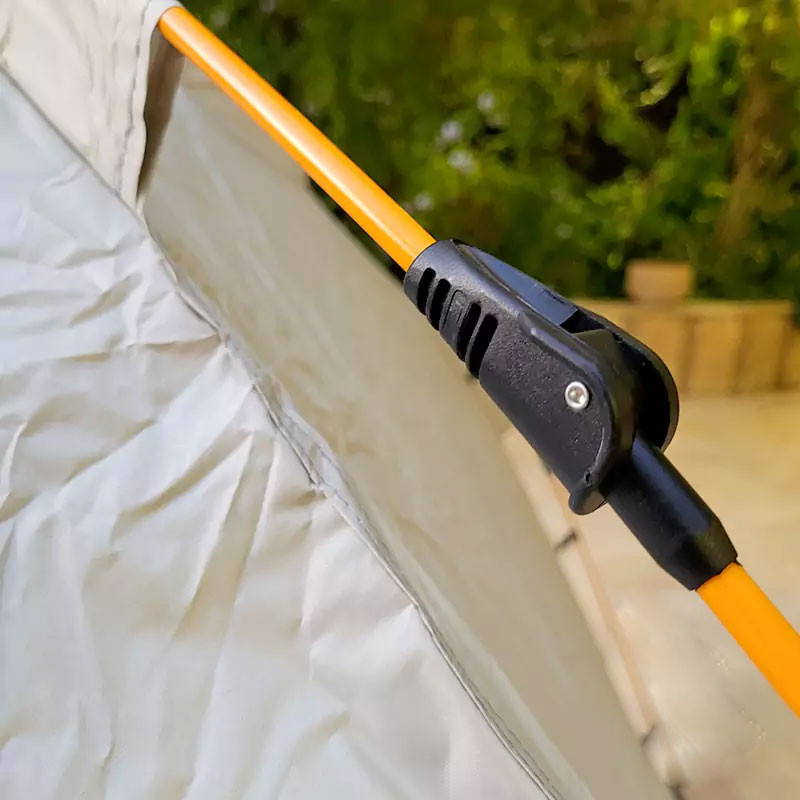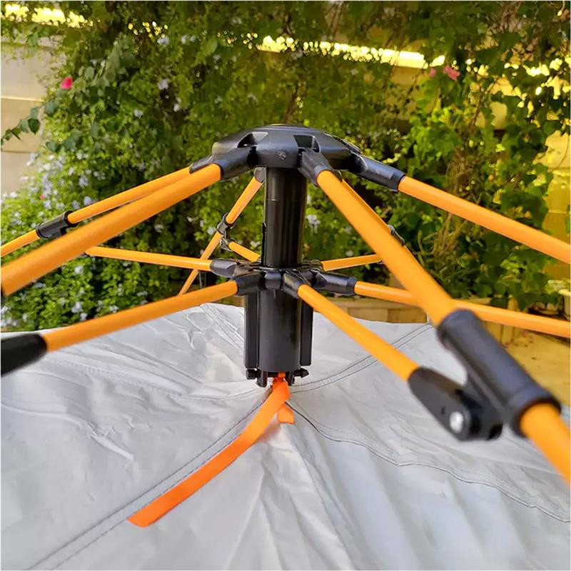 | روش نصب | چادر را از کیسه خود بیرون آورید و وسایل و میلههای آن را جدا کنید. میلهها معمولاً به صورت تاشو یا جداشدنی هستند. میلهها را به هم وصل کنید تا ساختار اصلی چادر شکل بگیرد. پس از نصب میلهها، چادر را به آرامی بالا بکشید تا به حالت ایستاده درآید. در این مرحله، میلهها باید به طور محکم در محل خود قرار گیرند. چادر را با استفاده از میخهای چادر یا گیرهها به زمین محکم کنید. |