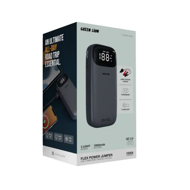 پاوربانک و جامپ استارتر گرین لاین مدل Flex Power GNFLXJUMP10GY ظرفیت ۱۰۰۰۰ میلی آمپر ساعت