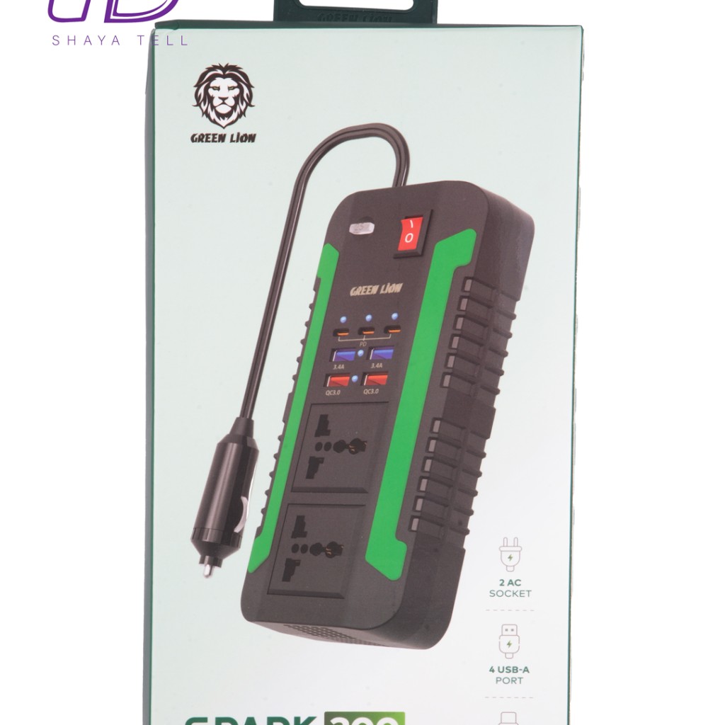 مبدل برق خودرو Green Lion SPARK 300 راهحلی ویژه برای تامین برق و شارژ همزمان چند دستگاه در ماشین و مسافرت است. این مدل با توان خروجی ۳۰۰ وات و تبدیل برق فندکی ۱۲ ولت خودرو به برق شهری ۲۲۰ ولت، امکان استفاده از انواع دستگاههای الکترونیکی مانند لپتاپ، تبلت، شارژرهای قوی، اسپیکر، دوربین، و حتی لوازم خانگی کوچک را فراهم میکند.